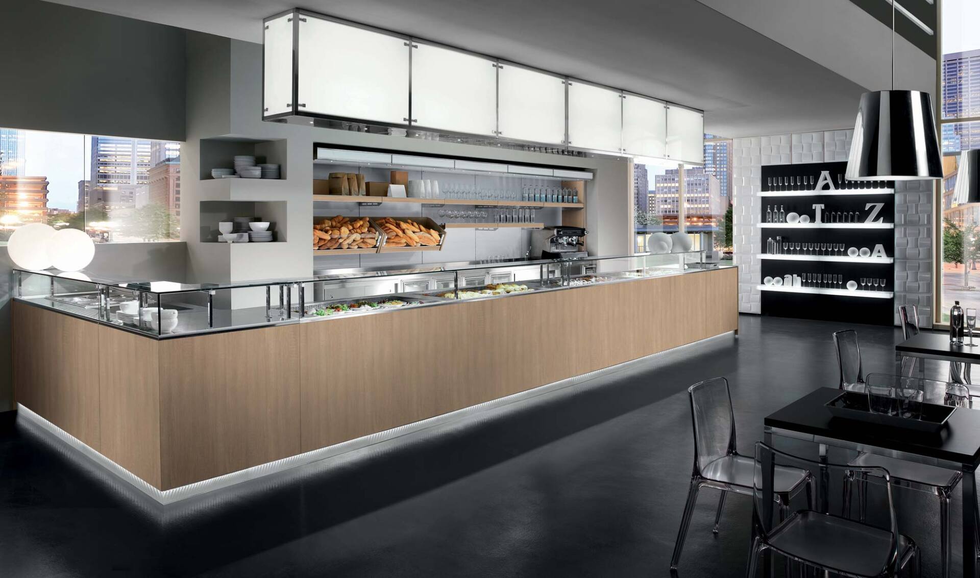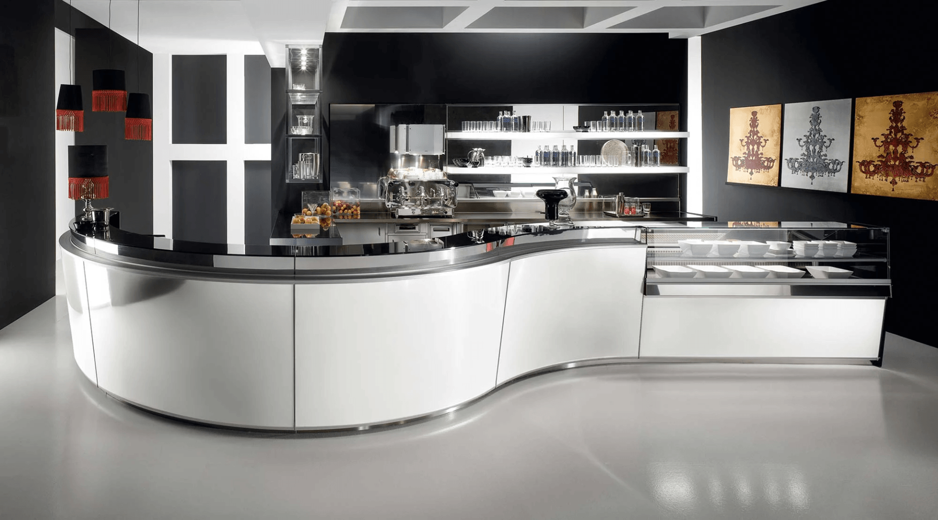 La varietà delle proposte d’arredo bar e la grande flessibilità della modulistica soddisfano tutte le esigenze per la realizzazione di un arredamento bar di classe ed esclusivo. Vendiamo banconi bar moderni ed eleganti, dotati di alta funzionalità ed avanzata tecnologia di refrigerazione. I nostri arredamenti professionali per bar sono realizzati su misura, in base alle esigenze di design dei nostri clienti.